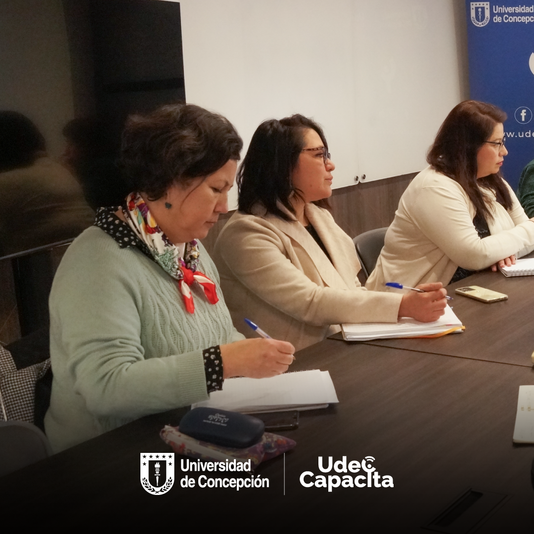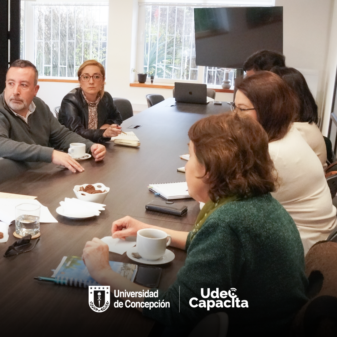 La reunión se realizó el viernes 11 de agosto en las dependencias de UdeC Capacita y contó con la presencia de directivas, directivos y profesionales de ambas direcciones y del organismo capacitador.